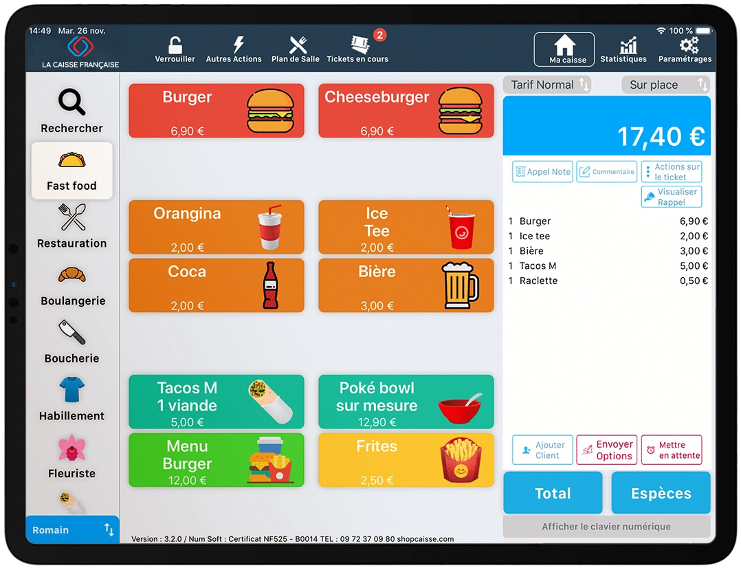 La Caisse Française c’est un logiciel d’encaissement conçu et développer en France, intégré à une caisse tactile avec système de paiement sans contact, imprimante ticket intégrée,…